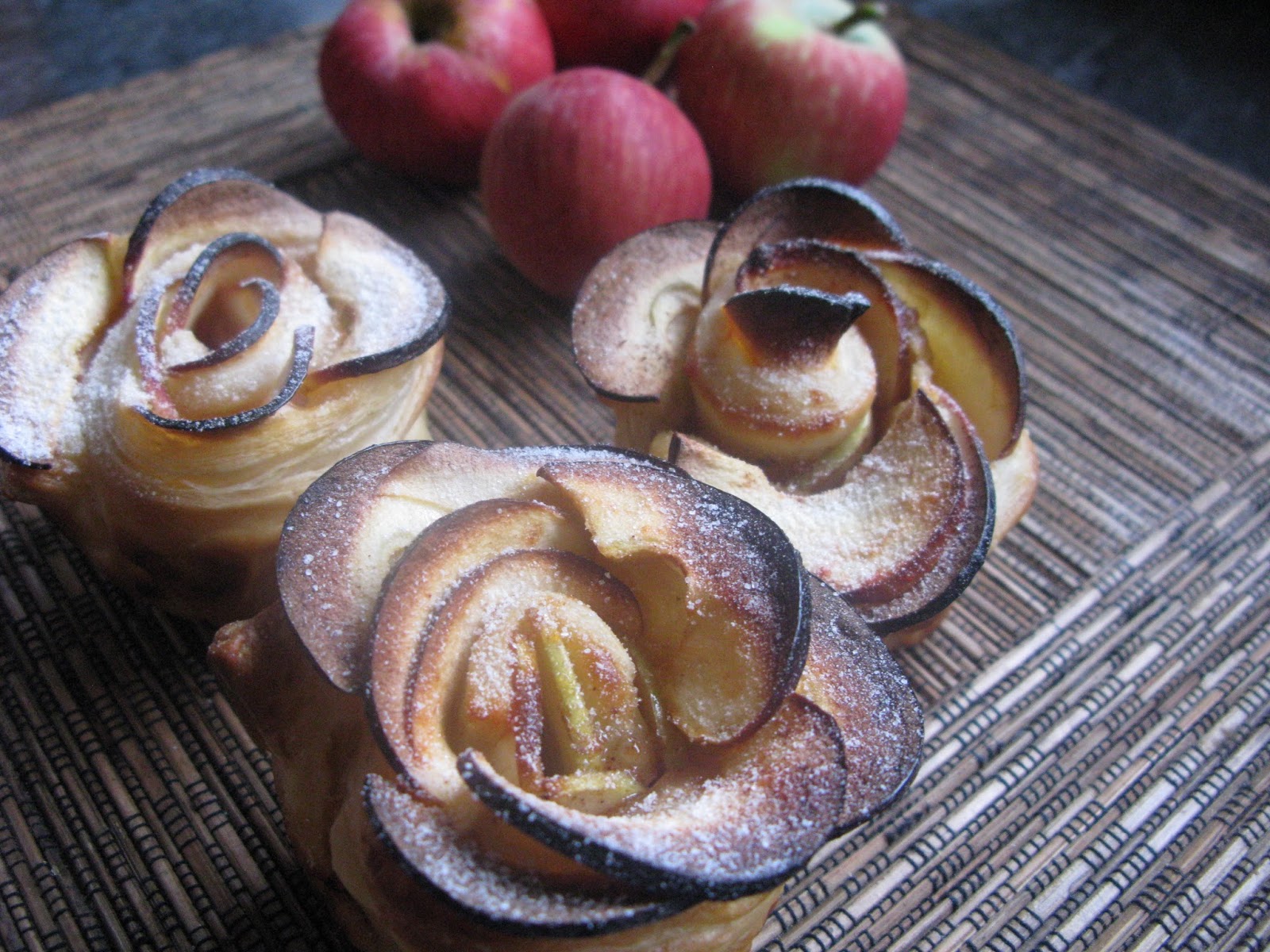 Quando tiver as maçãs todas partidas, estenda a massa e corte-a em rectângulos com cerca de 5 cm de largura. Pincele a massa com o doce de tomate ou qualquer outro doce da sua preferência. Disponha as meias luas de maçã ao longo da massa, de modo a que a parte da casca fique ligeiramente fora da massa (é esta parte que vai formar as pétalas). Deixe pelo menos 2 cm na parte de baixo sem cobrir com a maçã. Polvilhe com canela e dobre os 2 cm de massa de modo a cobrir uma parte da maçã. Comece a enrolar a maça numa das pontas de modo a fazer a rosa. Coloque-a numa forma de queques forrada com papel vegetal. Repita a operação até terminar a maça (eu fiz 6 rosas com um pacote de massa folhada). Leve ao forno pré-aquecido a 200º por 30 minutos ou até a massa estar cozida. Retire do forno e polvilhe com açúcar em pó e canela. Sirva morno.